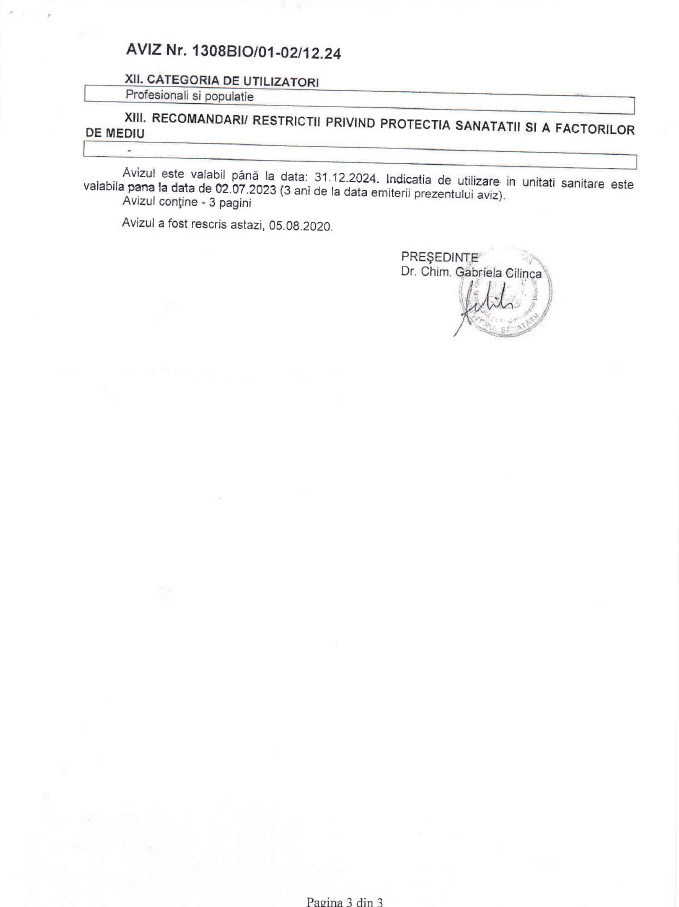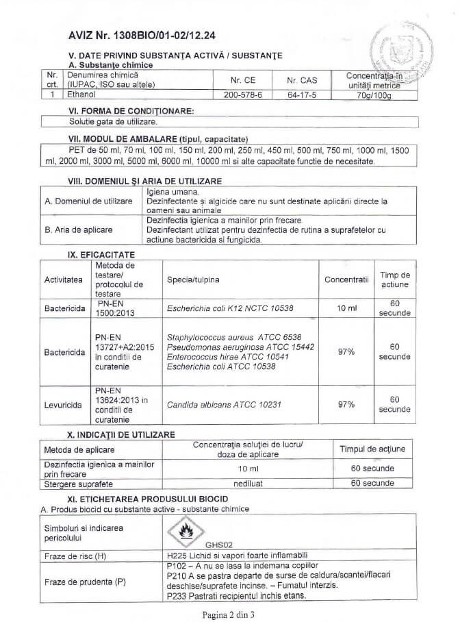 | Utilizat pentru | Dezinfectant |