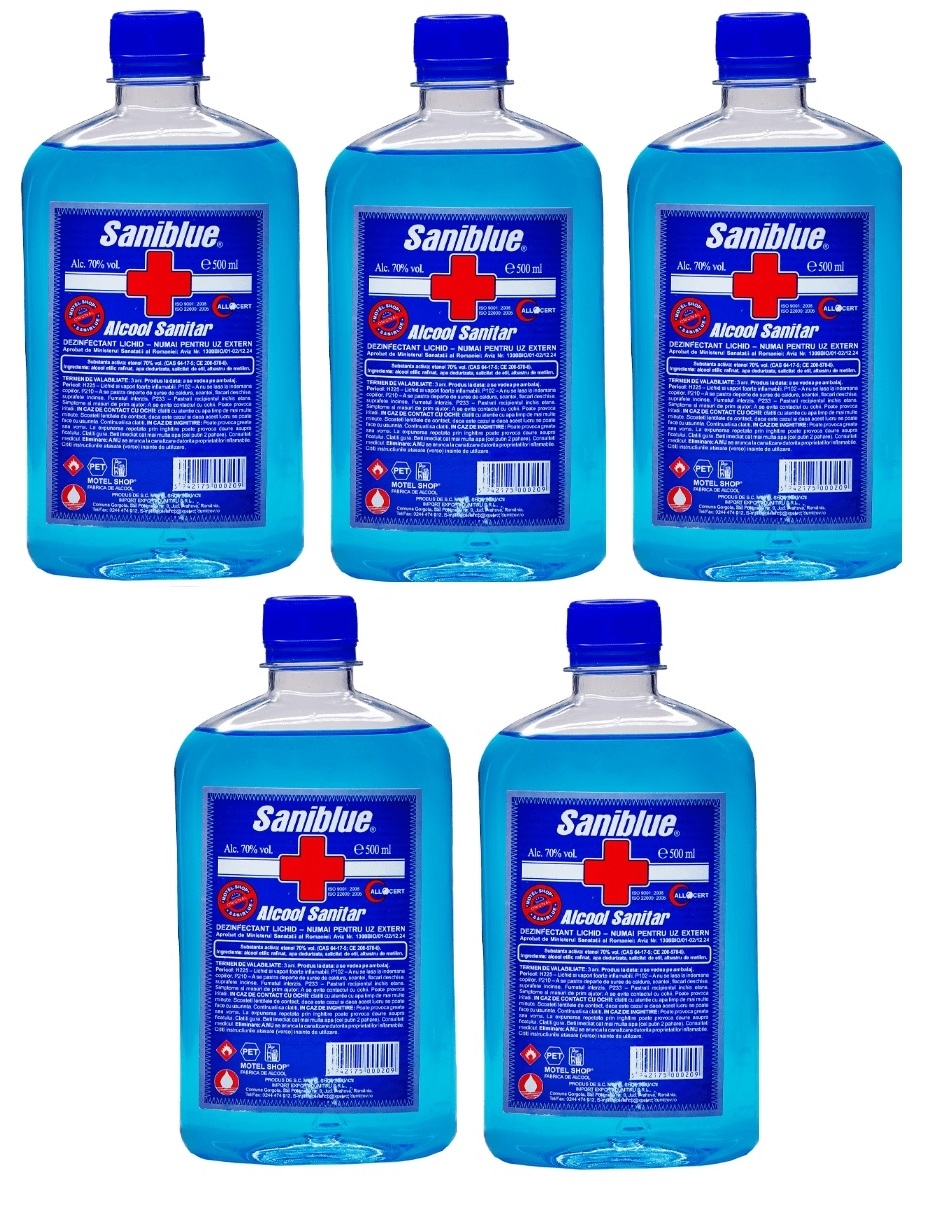 Pachet Saniblue spirt/alcool sanitar 70%, 500 ml x 5 buc