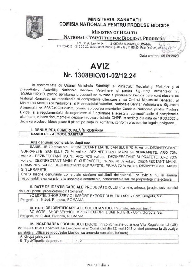 | Tip produs | Alcool Sanitar |