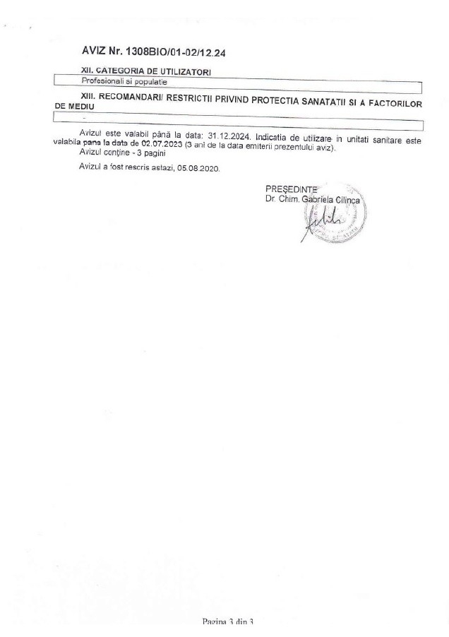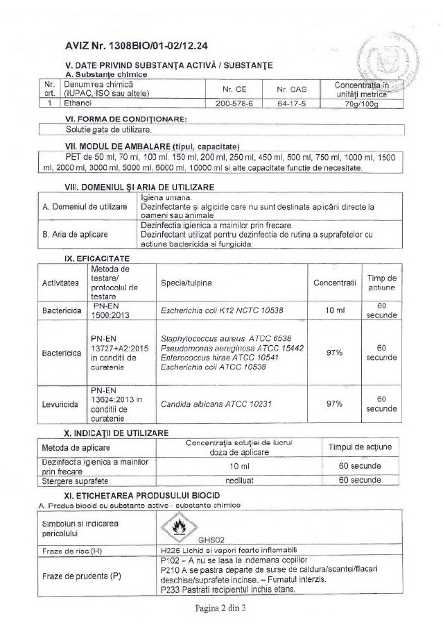 | Utilizat pentru | Dezinfectant |