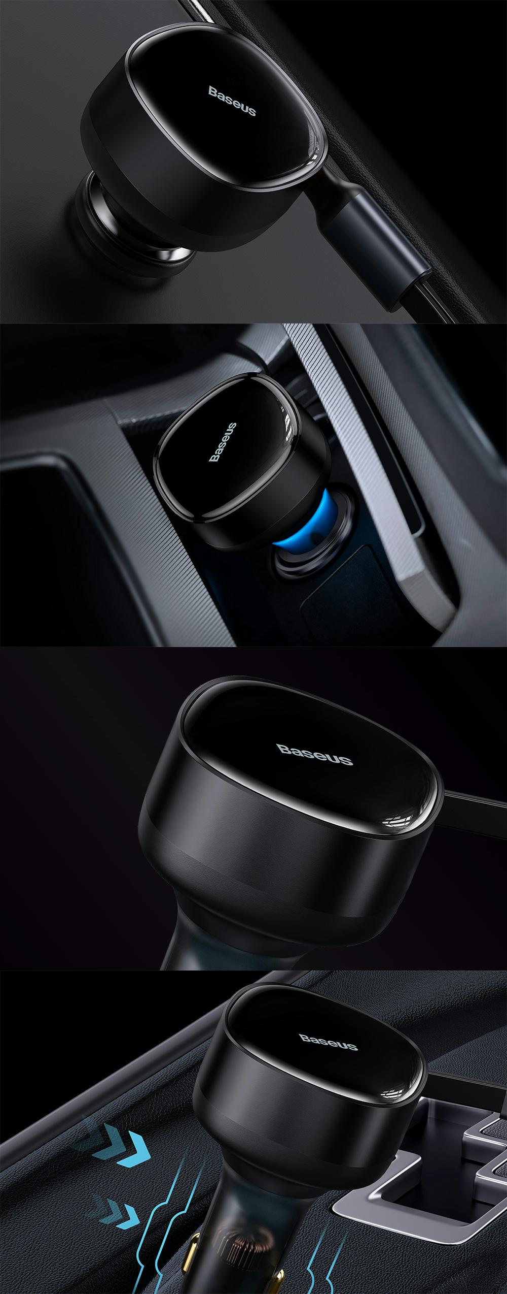 Incarcator auto Baseus Enjoyment, 33W, cu cablu retractabil 2xUSB-C, Negru