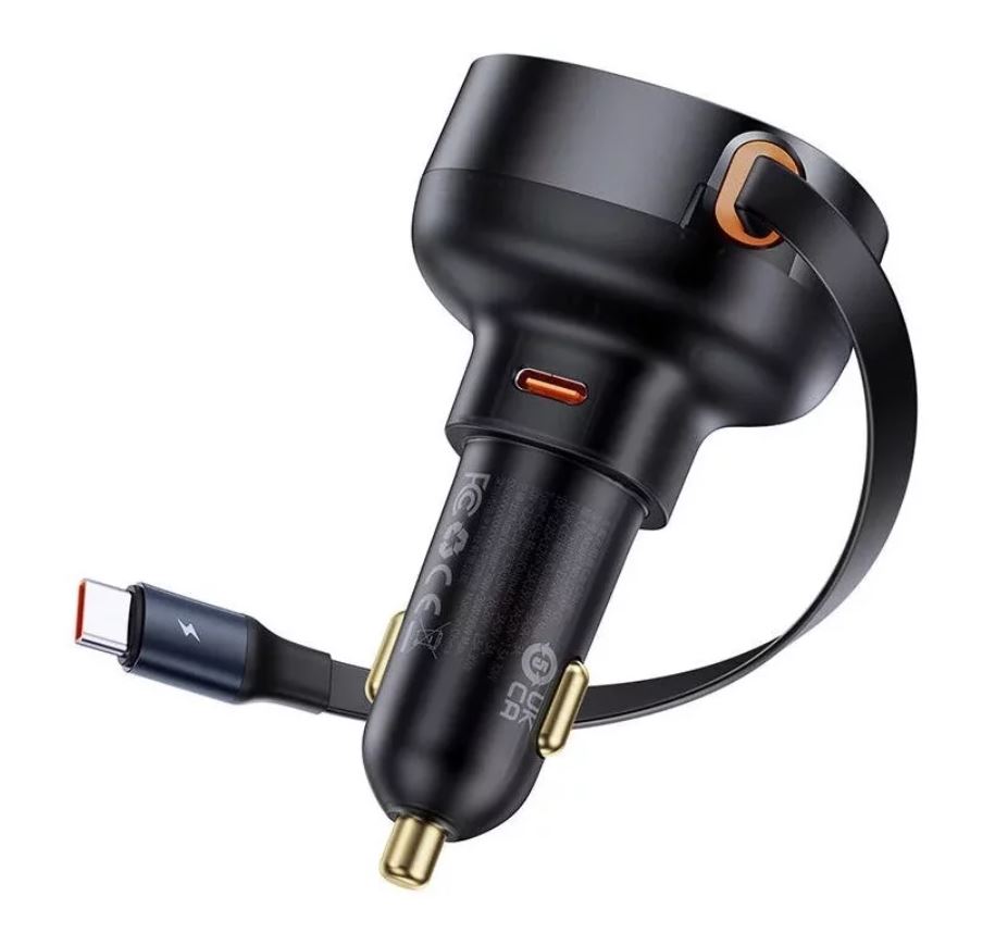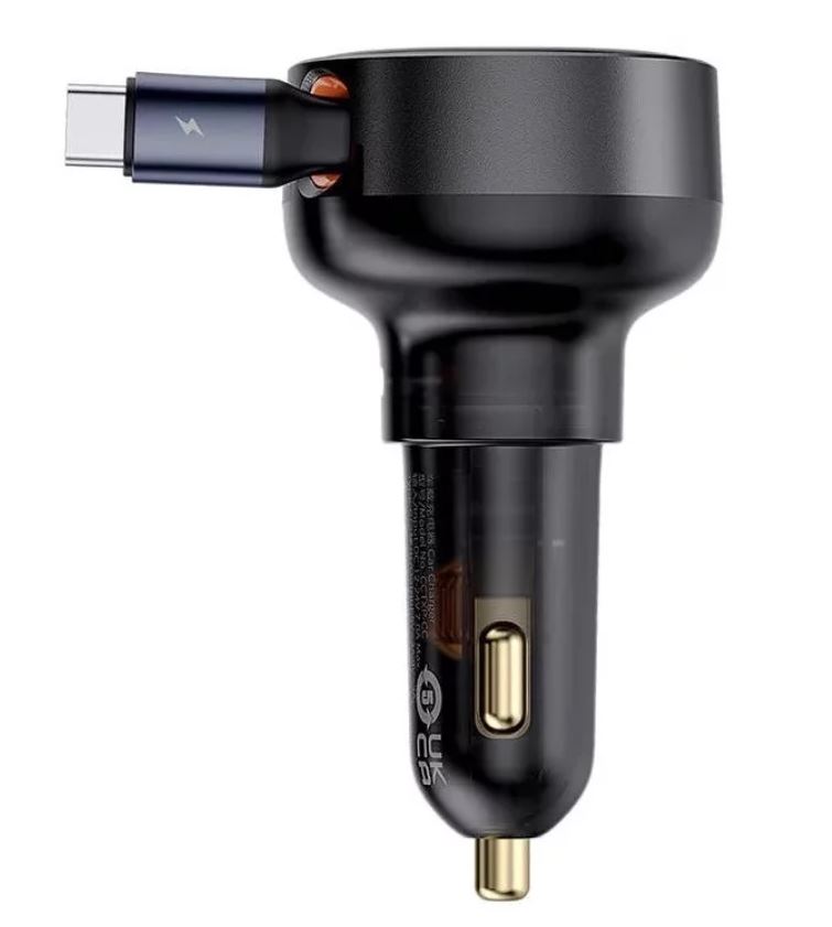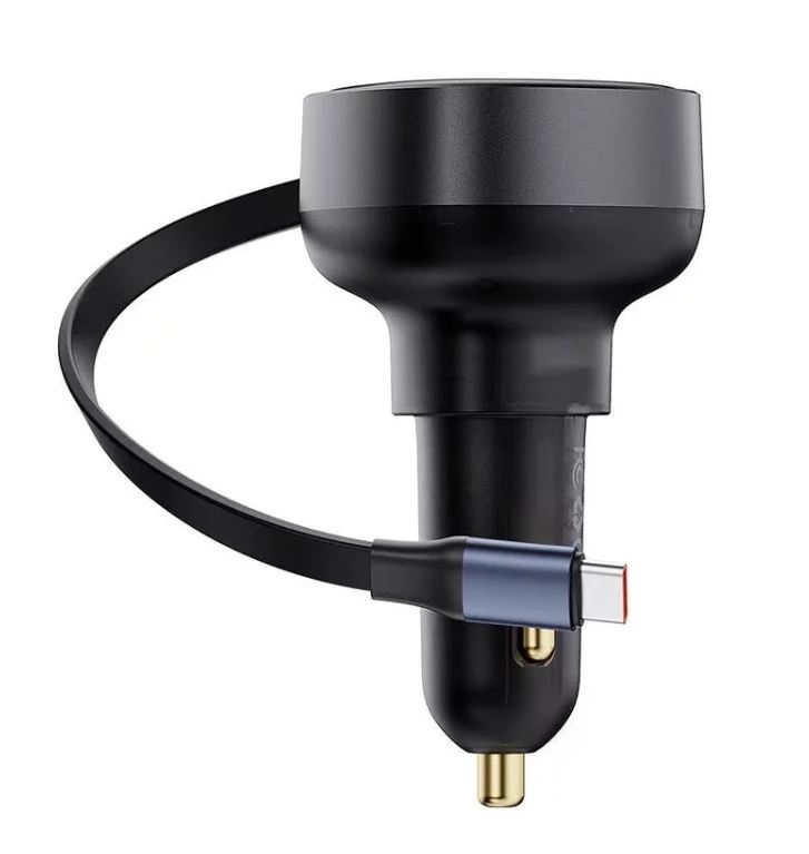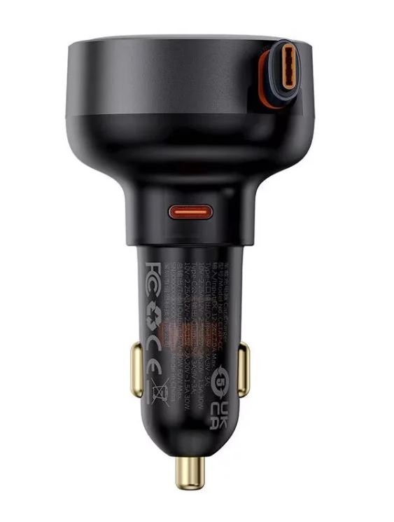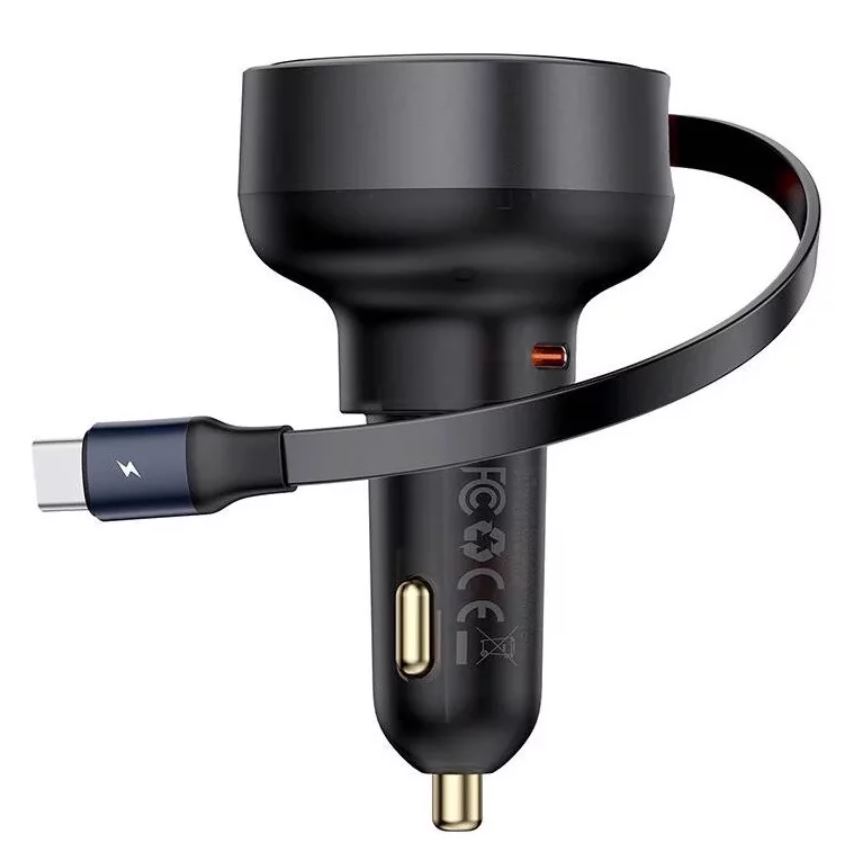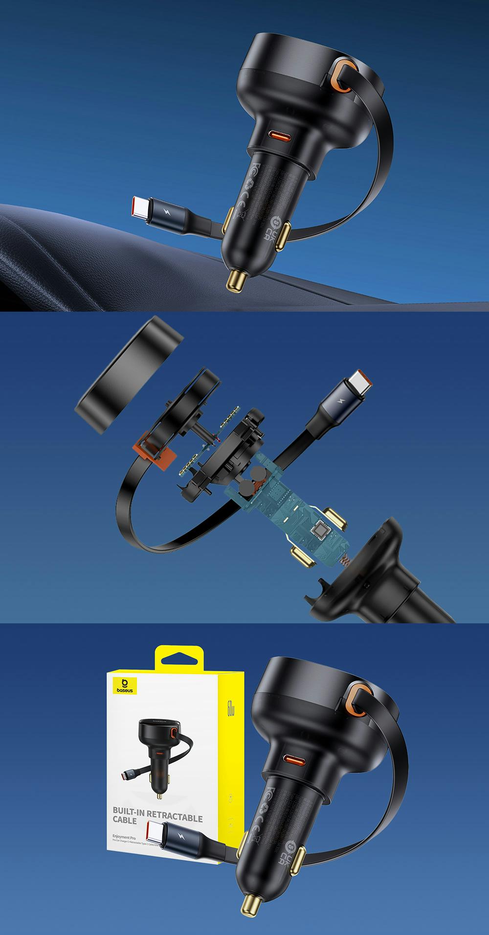 Incarcator auto Baseus Enjoyment Pro, 60W, cu cablu retractabil USB-C, Negru