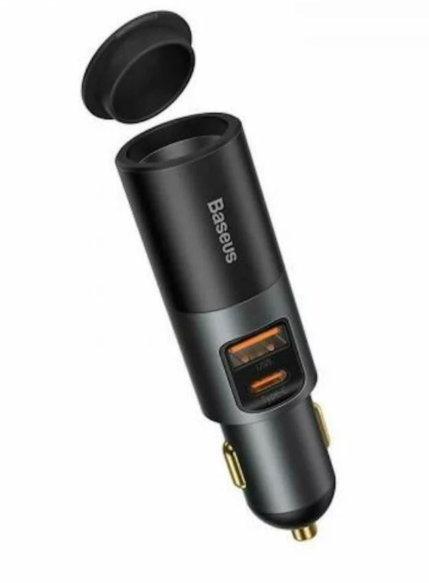 Incarcator auto Baseus Share Together, 1xUSB, 1xUSB-C, cu port de expansiune pentru bricheta, 120W, Quick Charge, Negru