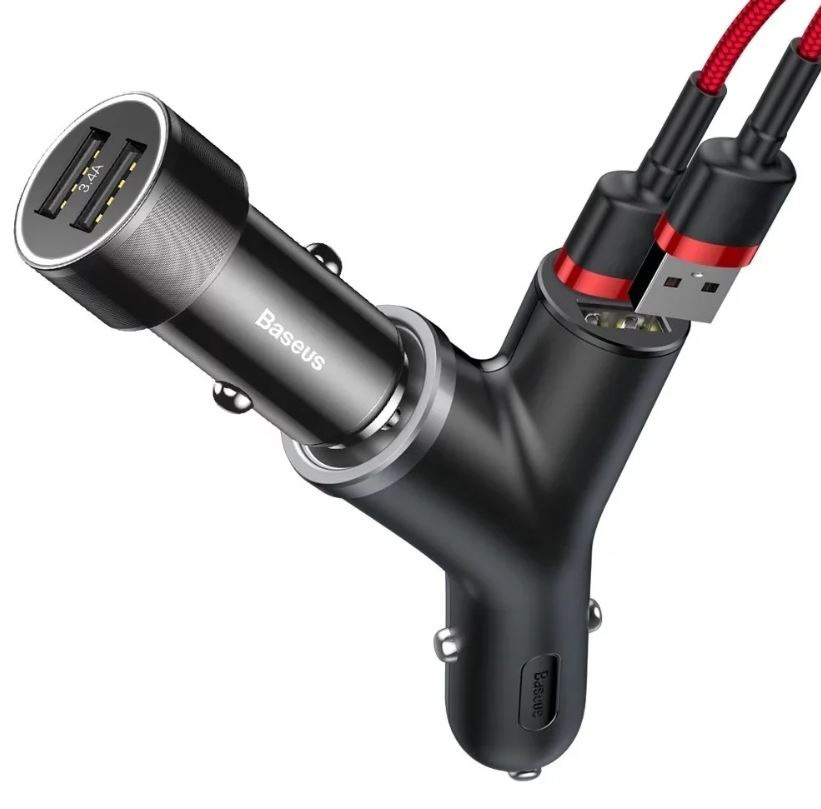 Incarcator Auto Baseus Y-Type cu Extensie Bricheta 2x USB-A, 3.4A, Negru