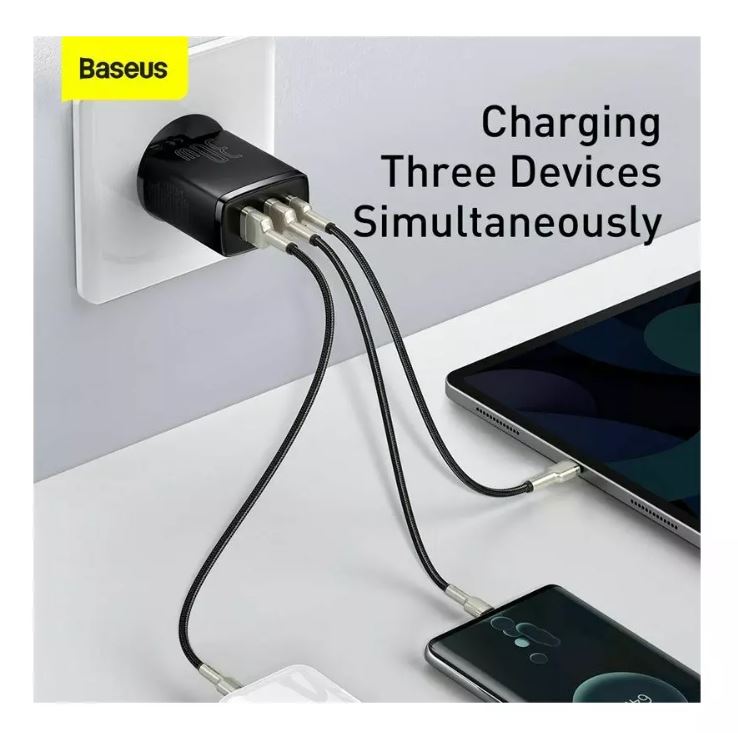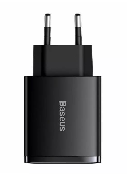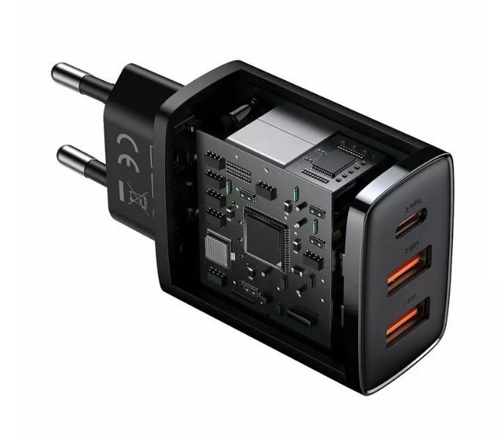 Incarcatorul de retea Baseus Compact de 30W poate alimenta trei dispozitive in acelasi timp, oferind incarcare rapida pentru cele mai noi modele de smartphone-uri si tablete. Are doua port-uri USB si un port USB-C, ce suporta protocolul de incarcare inteligent Fast Charge / Quick Charge / PD si Super Charge.
