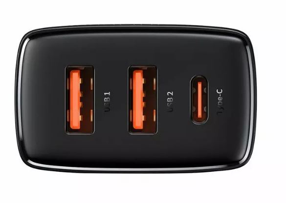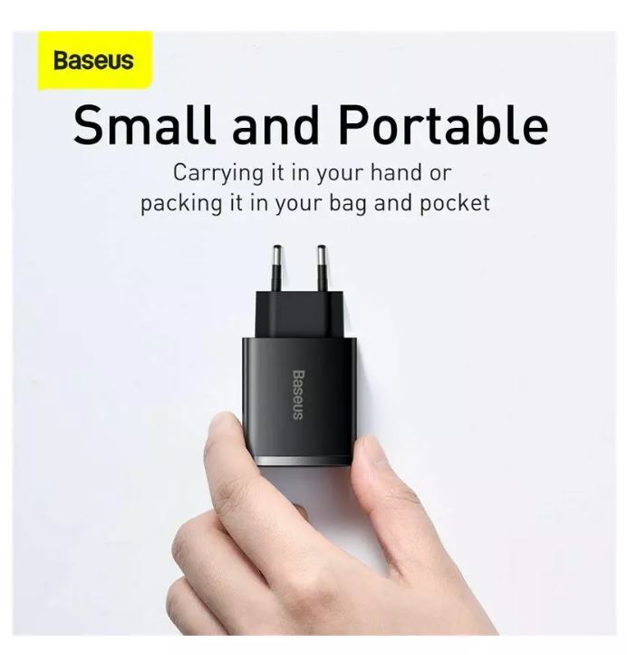 Incarcatorul Retea Compact Quick Charge de la Baseus poate alimenta trei dispozitive in acelasi timp, iar dimensiunea mica il face usor de pus intr-o geanta sau buzunar. Are capacitate de 30W, 2 port-uri USB si un port USB-C.