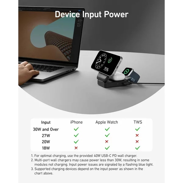 4. Statia de incarcare fara fir Anker MagGo (pliabila 3-in-1) poate incarca un Apple Watch?