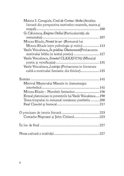 Pe baza unei bogate experiente in invatamant autorul propune erse metode ce pot fi folosite in analiza textului literar exemplificandu-le prin aplicatii pe textele unor mari scriitori cum sunt M. Eminescu I. L. Caragiale I. Slavici T. Arghezi L. Blaga N. Iorga G. Calinescu Mateiu I. Caragiale. De asemenea se ofera in acest volum modele de sinteze tematice asupra operelor unor creatori reprezentativi din literatura romana precum M. Eliade sau V. Voiculescu. Aceste contributii sunt adresate in special elevilor pentru a-i indruma pe cai erse spre intelegerea aprofundata a textului literar si a-i ajuta sa se pregateasca pentru bacalaureat si pentru olimpiadele scolare. Profesorii pot gasi in aceste comentarii si sinteze sugestii utile pentru activitatea la clasa. De asemenea ele impreuna cu cateva studii de istorie literara pot fi utile tuturor celor interesati de literatura.Specificatii