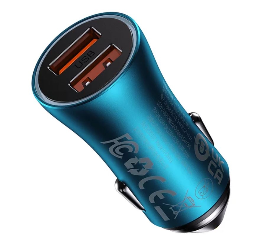 Incarcator auto Baseus Golden Contactor Max Dual, 2x USB-A, 60W Albastru