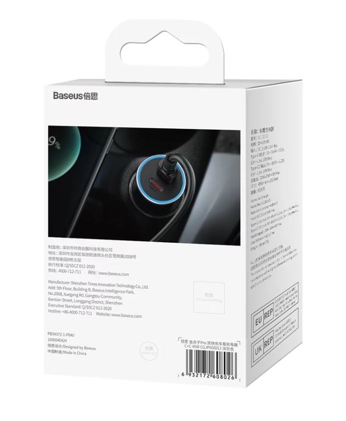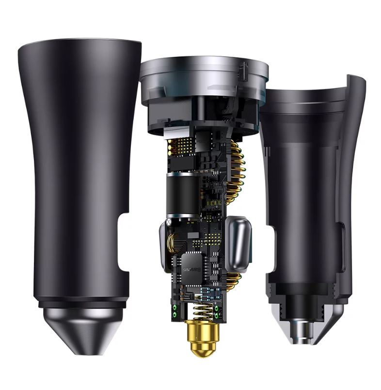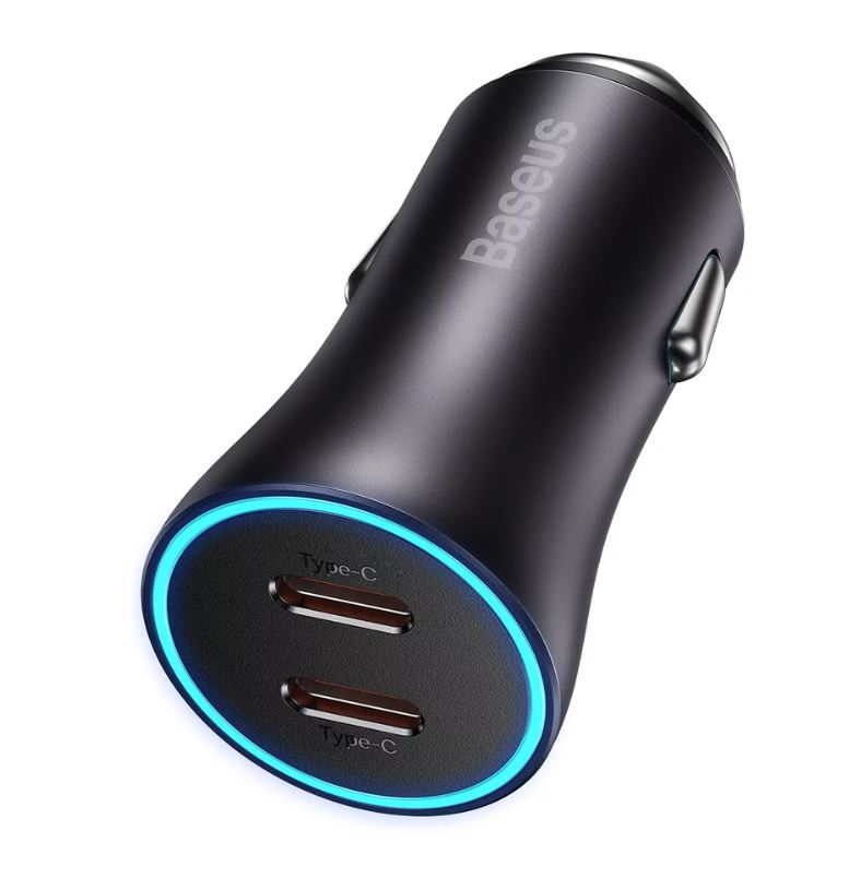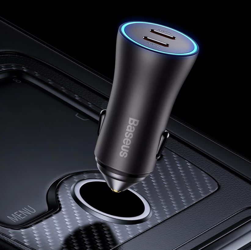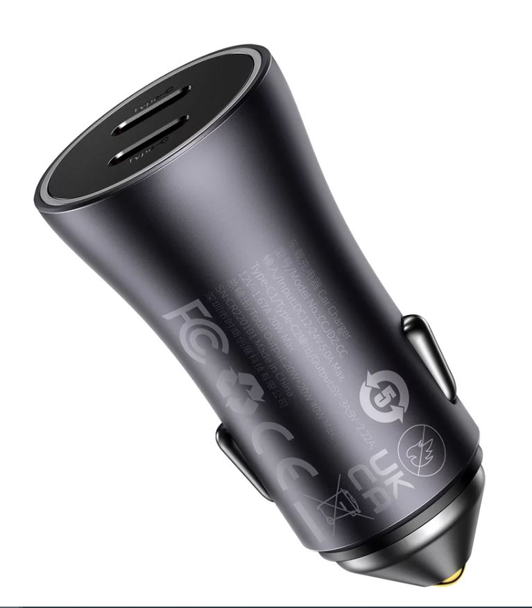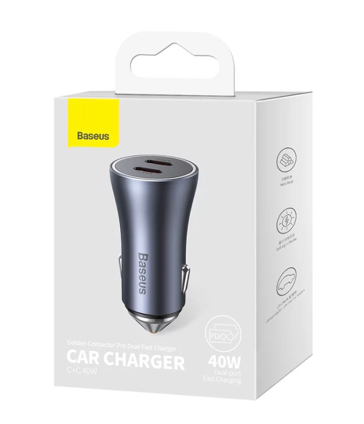 Incarcator auto Baseus Golden Contactor Max Dual, 2x USB-C, 40W Gri