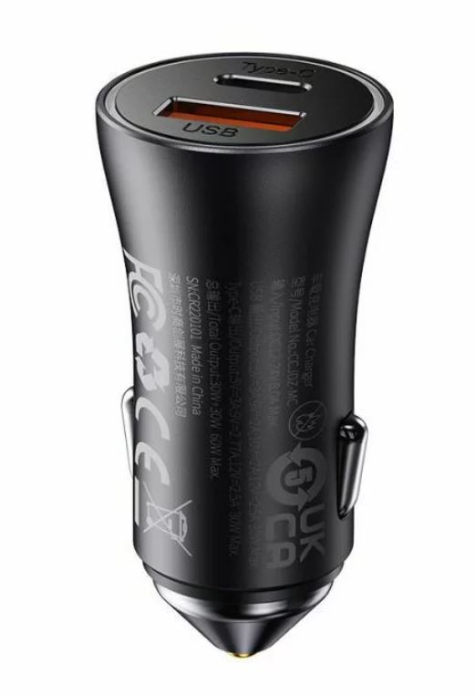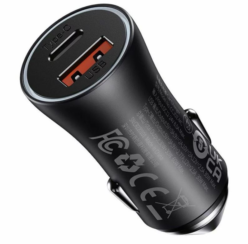 Incarcator auto Baseus Golden Contactor Max Dual Fast Charge U+C 60W Gri