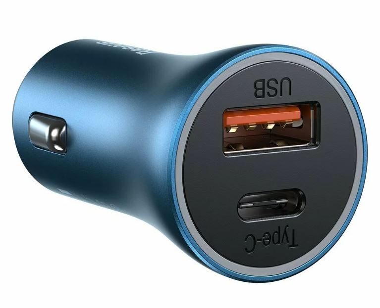 Incarcator auto 40W Baseus Golden Contractor Pro cu incarcare ultra-rapida si doua porturi - un port USB-C si un port USB-A. Este echipat cu protocoale de protectie, atat dispozitivul, cat si incarcatorul sunt protejate impotriva supraincalzirii, supracurentului si scurtcircuitului.