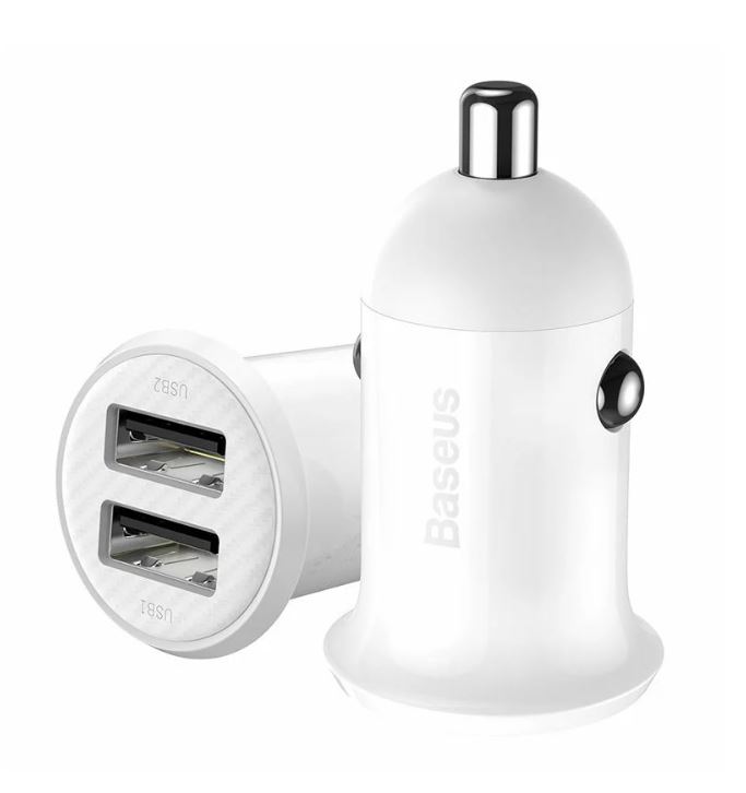 Incarcator auto Baseus Grain Pro, 2x USB, 4.8A, alb