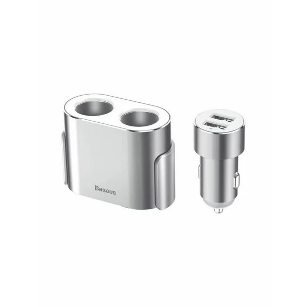 Incarcator auto Baseus High Efficiency, 80W, 2xUSB 3.1A, 2x extensie bricheta Argintiu