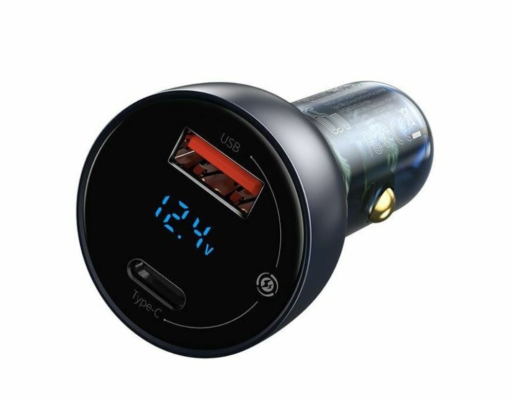 Incarcator auto Baseus Particular Digital Display, USB-C, USB-A, QC+PPS, Dual, 65W Gri