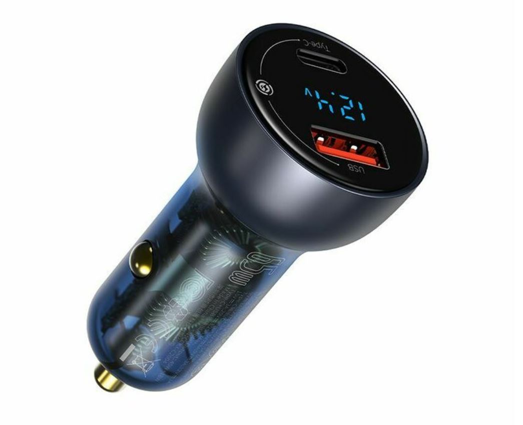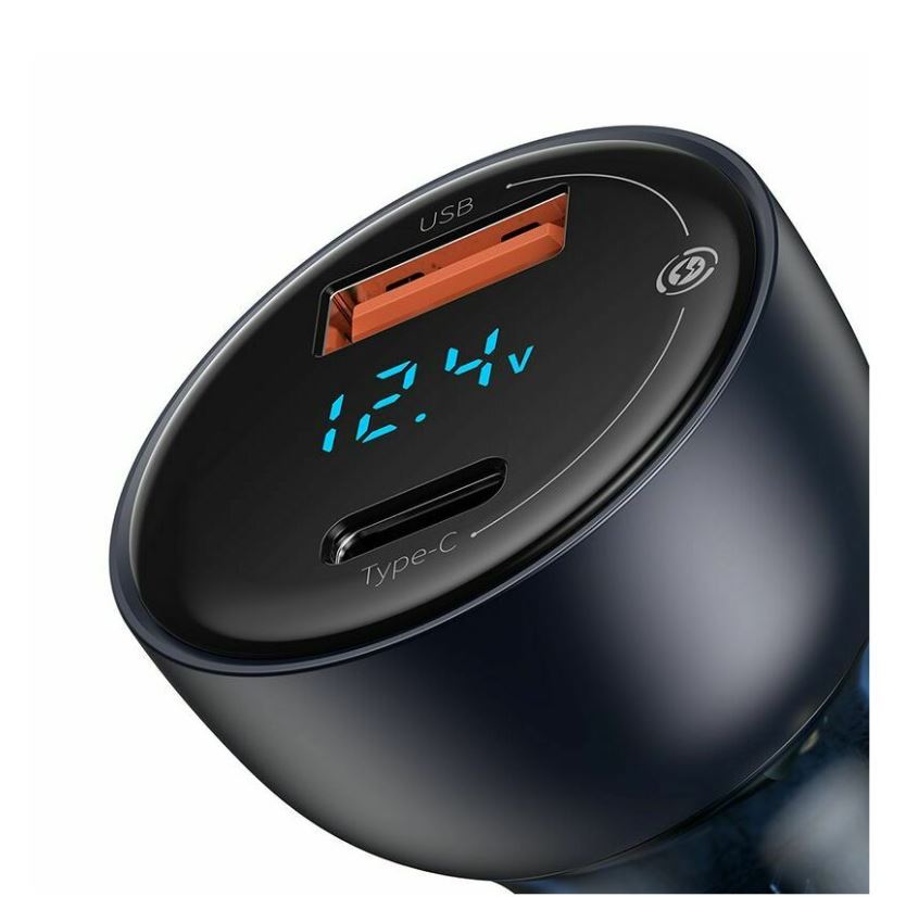 Incarcator auto Baseus Particular Digital Display, USB-C, USB-A, QC+PPS, Dual, 65W Negru