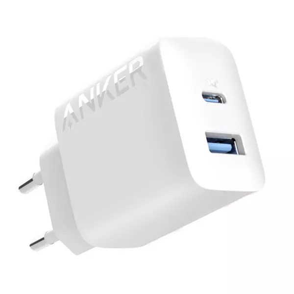 Incarcator de retea Anker 312 20W, USB-C, USB-A, Power Delivery, PowerIQ, Alb