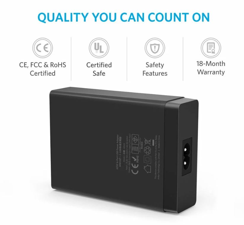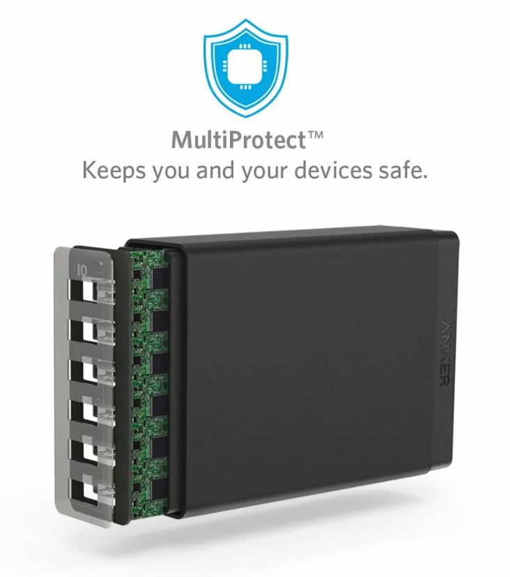 Anker PowerPort 6 este unul din cele mai compacte incarcatoare multi-port de pe piata. Protectiile impotriva scurgerilor de tensiune, scurt circuit, controlul temperaturii sau alte masuri de protective avansate, fac din Incarcatorul de retea Anker PowerPort 6 unul din cele mai sigure aparate. Dispozitivele conectate la acesta sunt intodeauna in siguranta.
