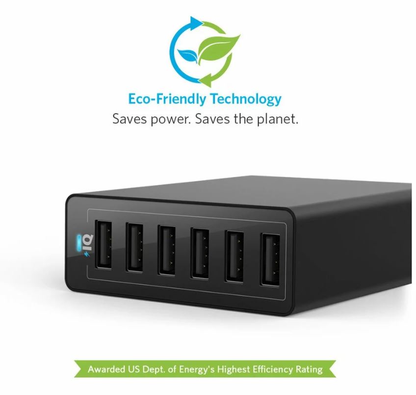 Anker PowerPort 6 a fost declarat dispozitivul cu cea mai inalta eficienta energetica (DOE 6) de catre Departamentul de Energie din Statele Unite.