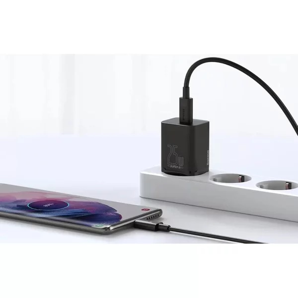Incarcator rapid Baseus Super Si, 1x USB-C, 25W, cablu USB-C inclus, Negru