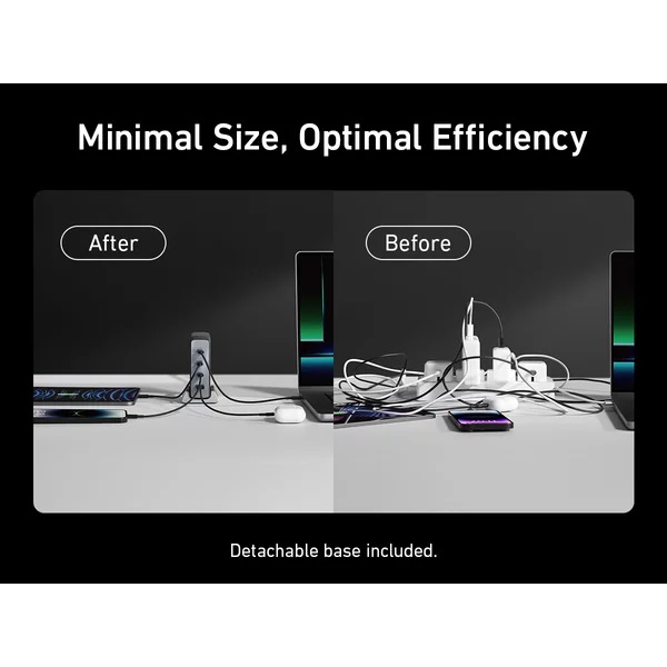 Designul compact al incarcatorului cu baza de incarcare detasabila asigura un spatiu de lucru fara dezordine, oferind in acelasi timp o incarcare eficienta.