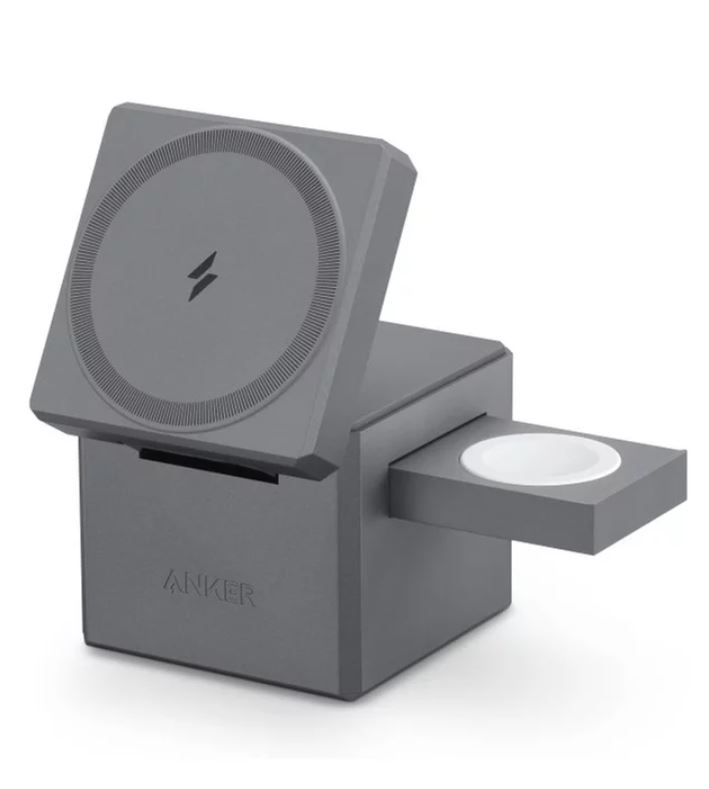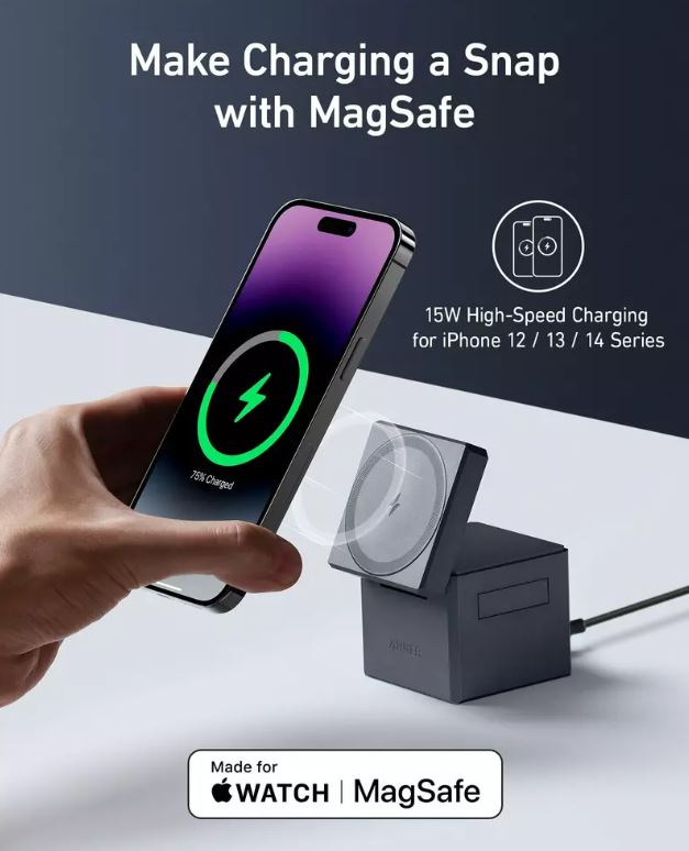 Incarcator wireless magnetic Anker 3-in-1 Cube MagSafe, 15W, Fast Charging, Pliabil, Negru