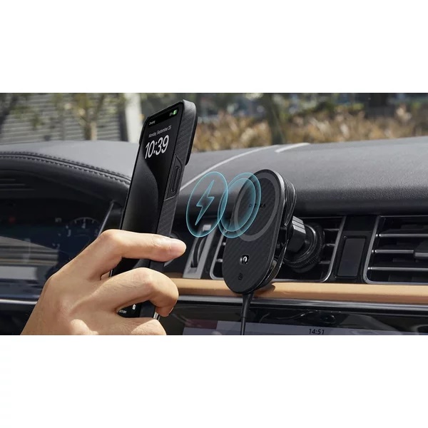 Profilul aerodinamic cu PC placat in vid si tesatura din fibra de aramida adauga un aspect rafinat si atractiv suportului auto MagSafe.