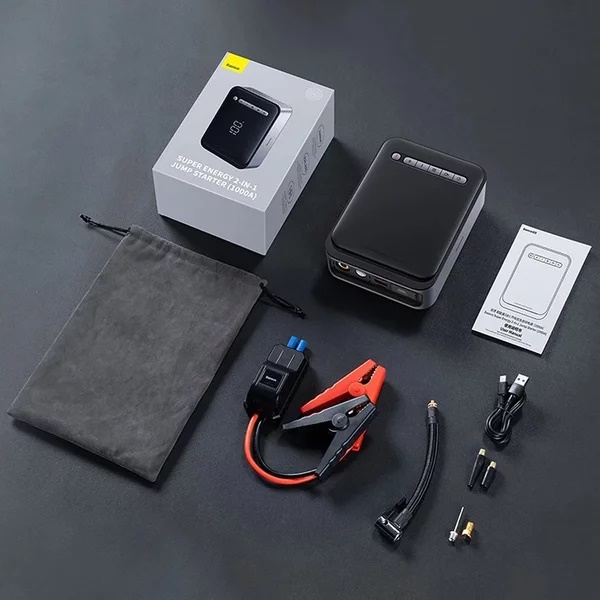 Acumulator extern pentru pornire auto Baseus Super Energy 2-in-1 Jump Starter, 8000 mAh, 1000A, 5-150PSI, Negru