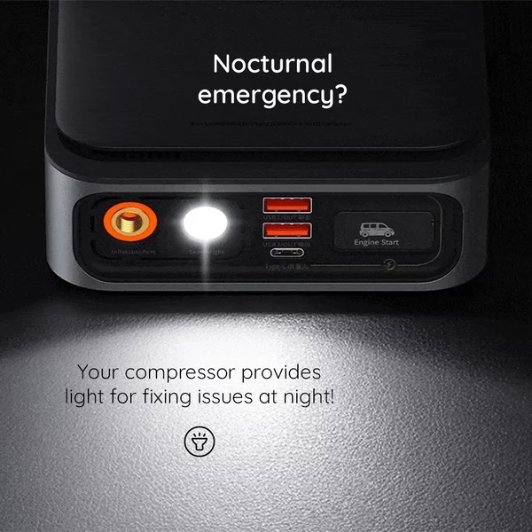 Acest starter auto portabil iti va alimenta dispozitivele si iti va umfla rotile vehiculului atunci cand ai nevoie. Datorita dimensiunilor sale reduse, poti transporta acest mini compresor pentru masina oriunde.