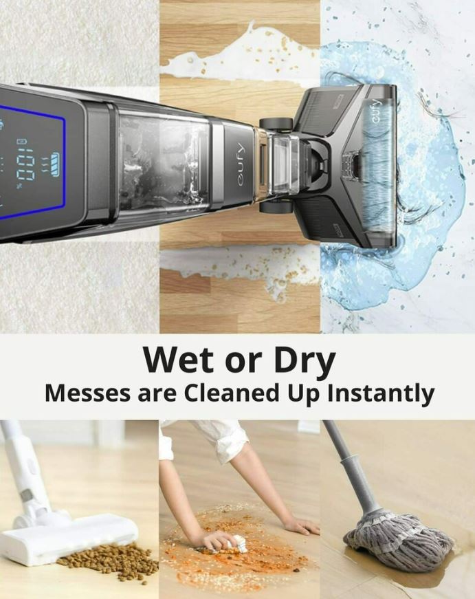 - eufy WetVac W31 are un ecran LED care afiseaza urmatoarele informatii, care va pot ajuta sa folositi aparatul cu usurinta: Modul de pulverizare a apei si modul de autocuratare/autouscare,alerta de apa scazuta, alerta de curatare a rezervorului de apa/filtrului murdar, starea de incarcare curenta/nivelul bateriei.