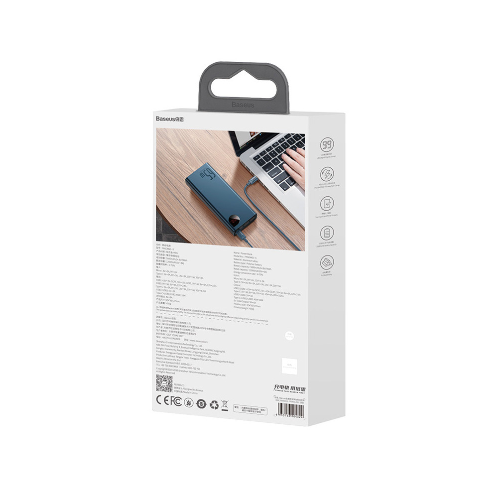 Baterie externa Baseus Adaman, 20000 mAh, 65W, Power Delivery 3.0, QC 4.0 Albastru