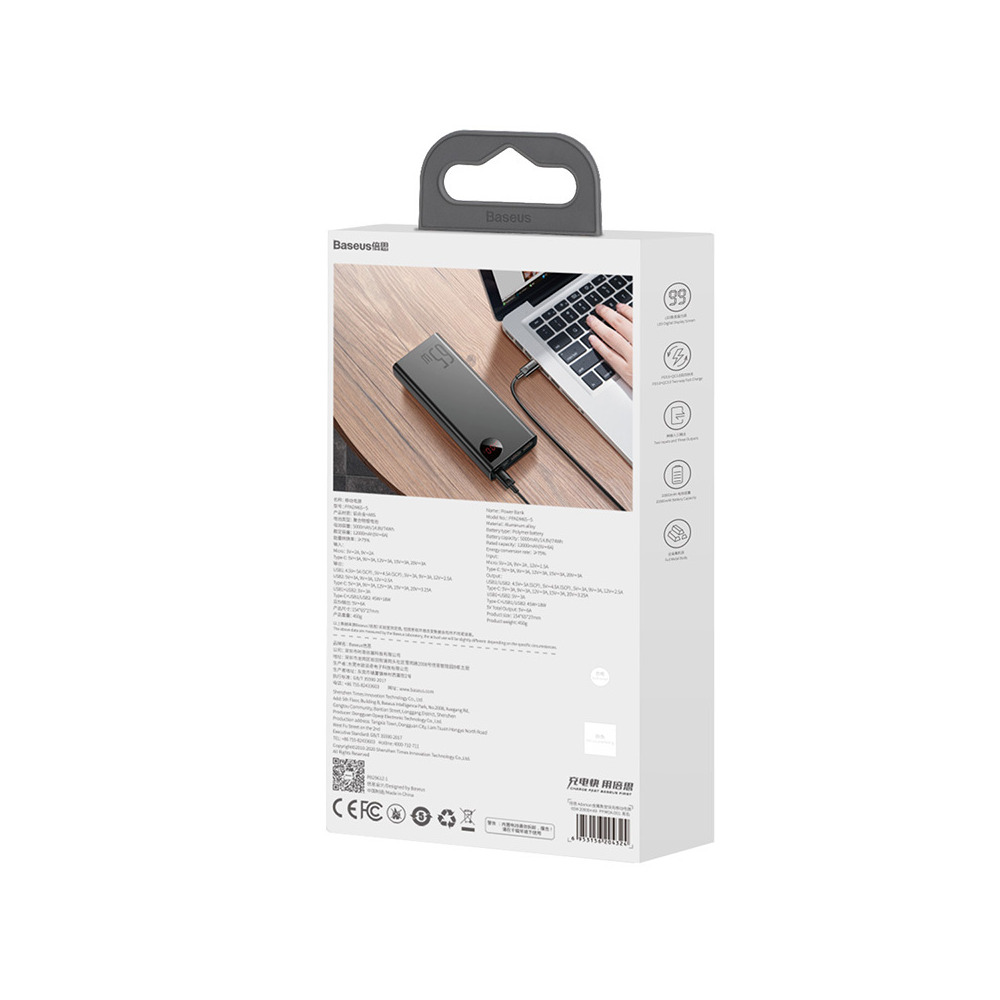 Baterie externa Baseus Adaman, 20000 mAh, 65W, Power Delivery 3.0, QC 4.0 Negru