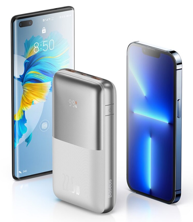 Bateria externa marca Baseus accepta tehnologia de incarcare rapida si este compatibila cu telefoanele Huawei, Xiaomi si Samsung, printre altele. Produsul este echipat cu un display digital care arata nivelul ramas al bateriei.