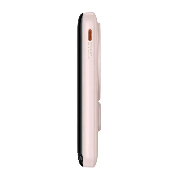 Baterie externa Baseus Magnetic Bracket, 10000mAh, 20W, Incarcare rapida, wireless, USB-C, cablu USB-C la USB-C inclus Roz