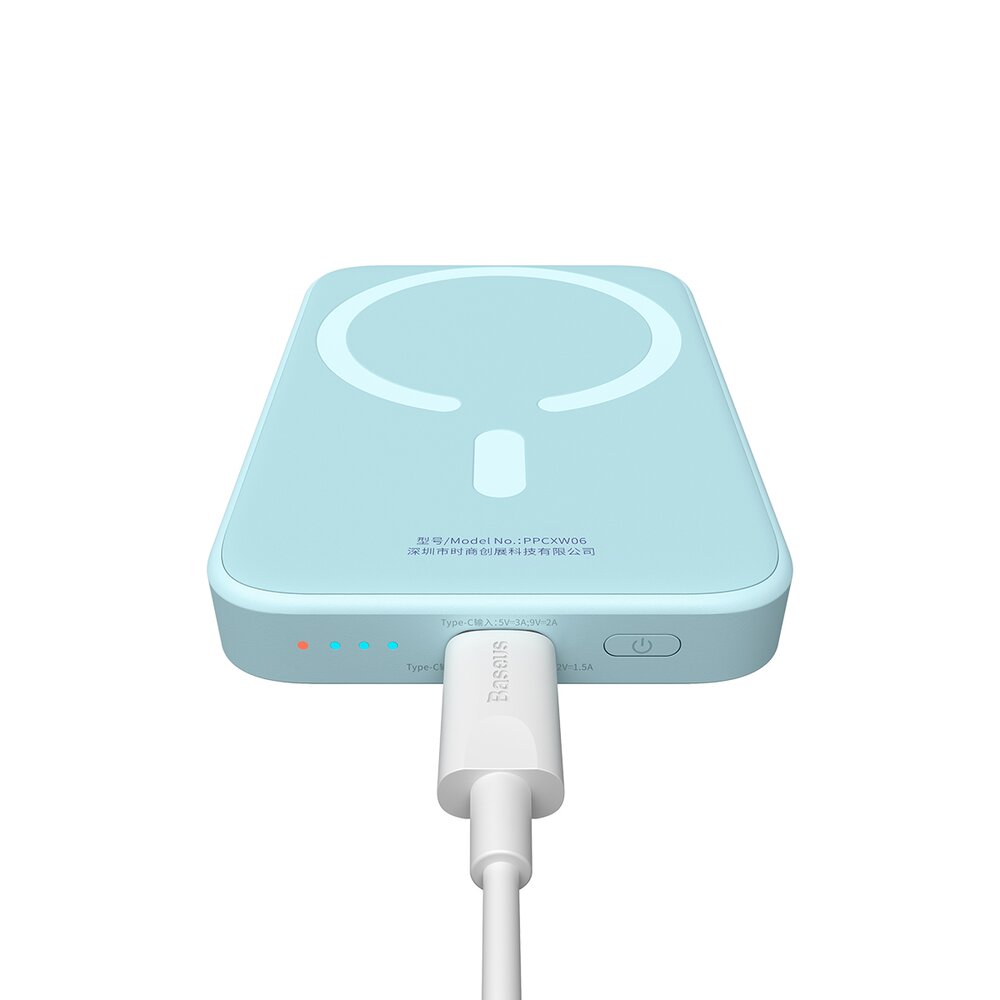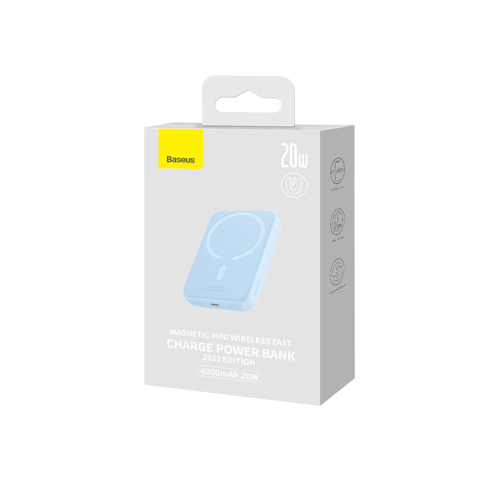 Baterie externa Baseus Magnetic Mini Wireless, 6000 mAh, Incarcare rapida, 20W, cablu USB-C inclus Albastru