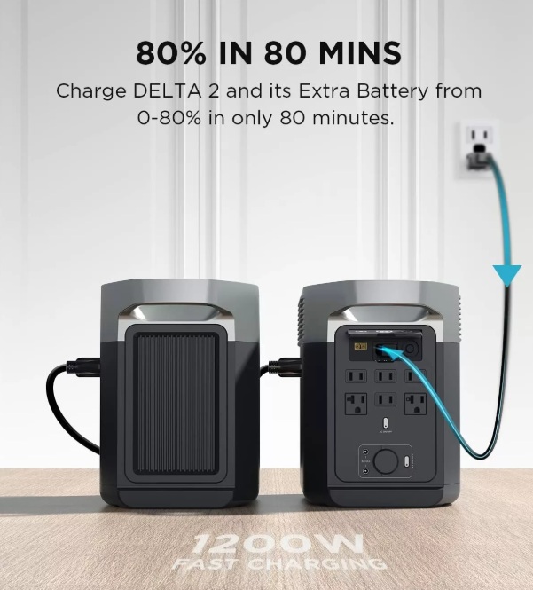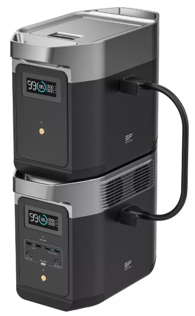 EcoFlow Delta 2 poate fi conectată la o singură baterie suplimentară Delta 2 pentru a dubla capacitatea totală.