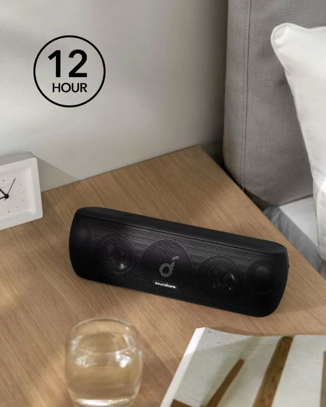 Difuzoarele boxei portabile Anker SoundCore Motion+ sunt inclinate in sus, la un unghi de 15°, pentru a umple intreaga incapere cu muzica.