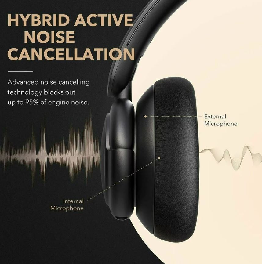 Casti Wireless Over-Ear Anker Soundcore Life Tune, Hybrid Active Noise Cancelling, Deep Bass, MultiPoint, Negru