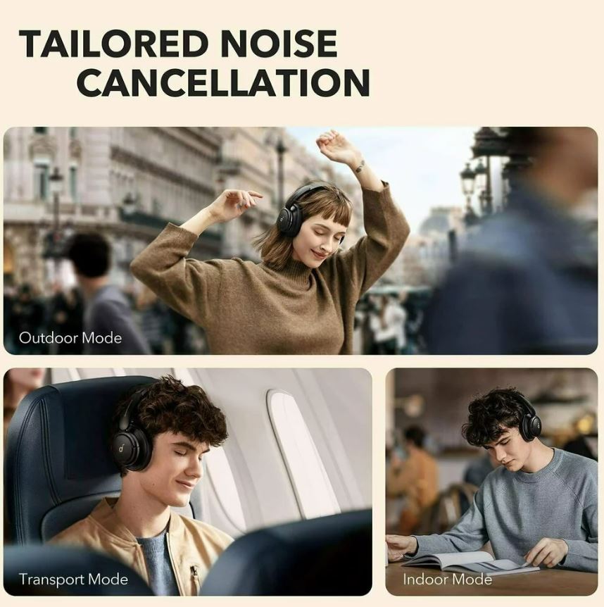Personalizati anularea zgomotului Life Tune cu 3 moduri: modul transport minimizeaza zgomotul motorului avionului, in aer liber reduce traficul si vantul, iar modul pentru interior amortizeaza sunetul birourilor aglomerate si al discutiilor celorlalte persoane din fundal.