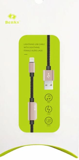 Cablu adaptor Benks D20 Lightning audio 1.2m Rose Gold