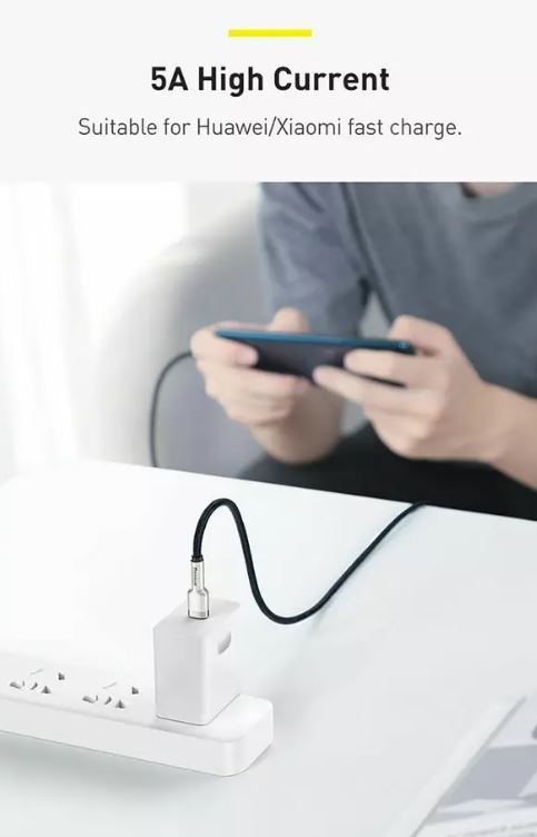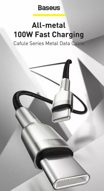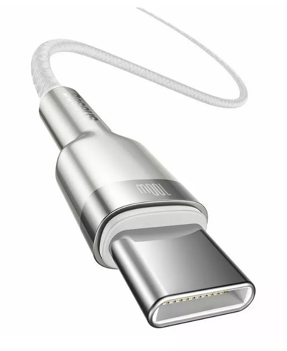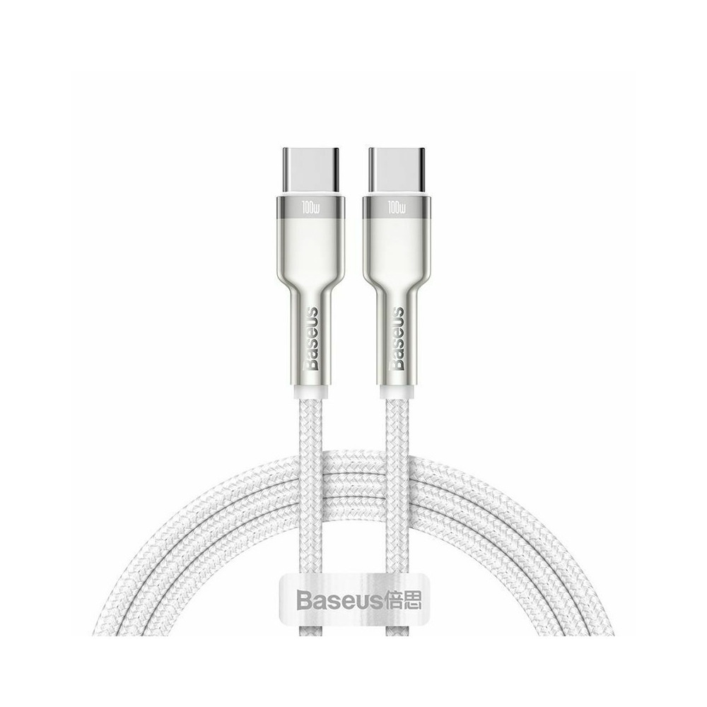 Cablu Baseus Cafule Series Metal USB-C la USB-C, 100W, 1m Alb