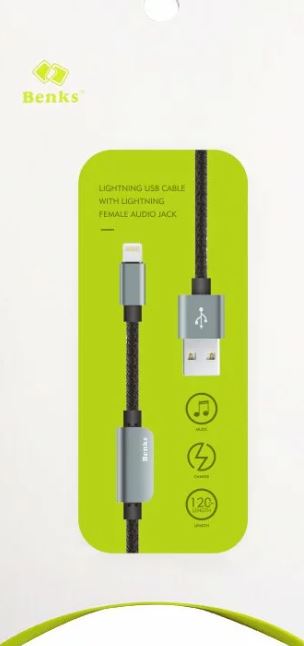 Cablu adaptor Benks D20 Lightning audio 1.2m Gri