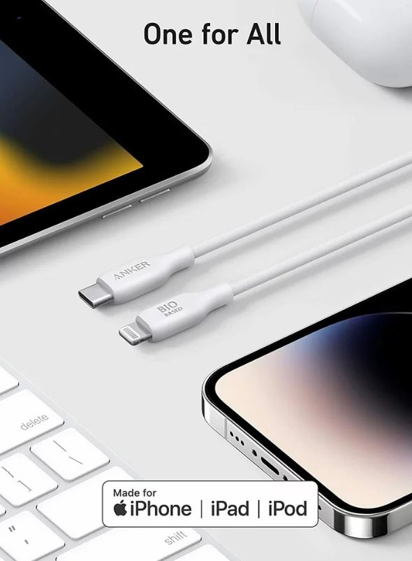 Cablu Anker Bio 541 USB C Apple Lightning MFI, 0.91 metri Alb