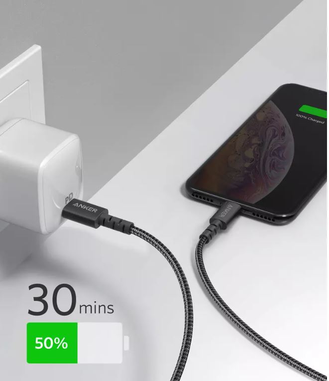 Cablul USB-C Lightning MFI Anker PowerLineSelect+are grija de telefonul tau. Chip-ul incorporat opreste automat incarcarea smartphone-ului in momentul in care bateria este incarcata 100%. Ofera o incarcare de 2,5 ori mai rapida prin USB-C PowerDelivery. Incarcati in 30 de minute 50% din capacitatea bateriei dispozitivului.