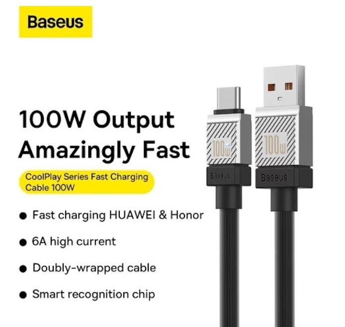 Cablu Baseus Coolplay, USB-A la USB-C, 100W, 1m Negru
