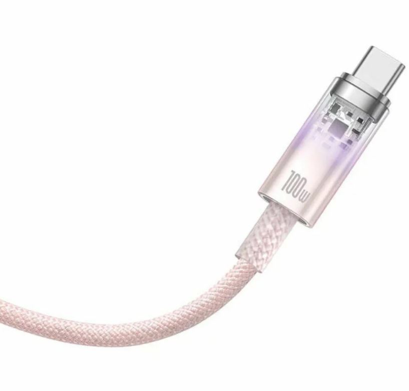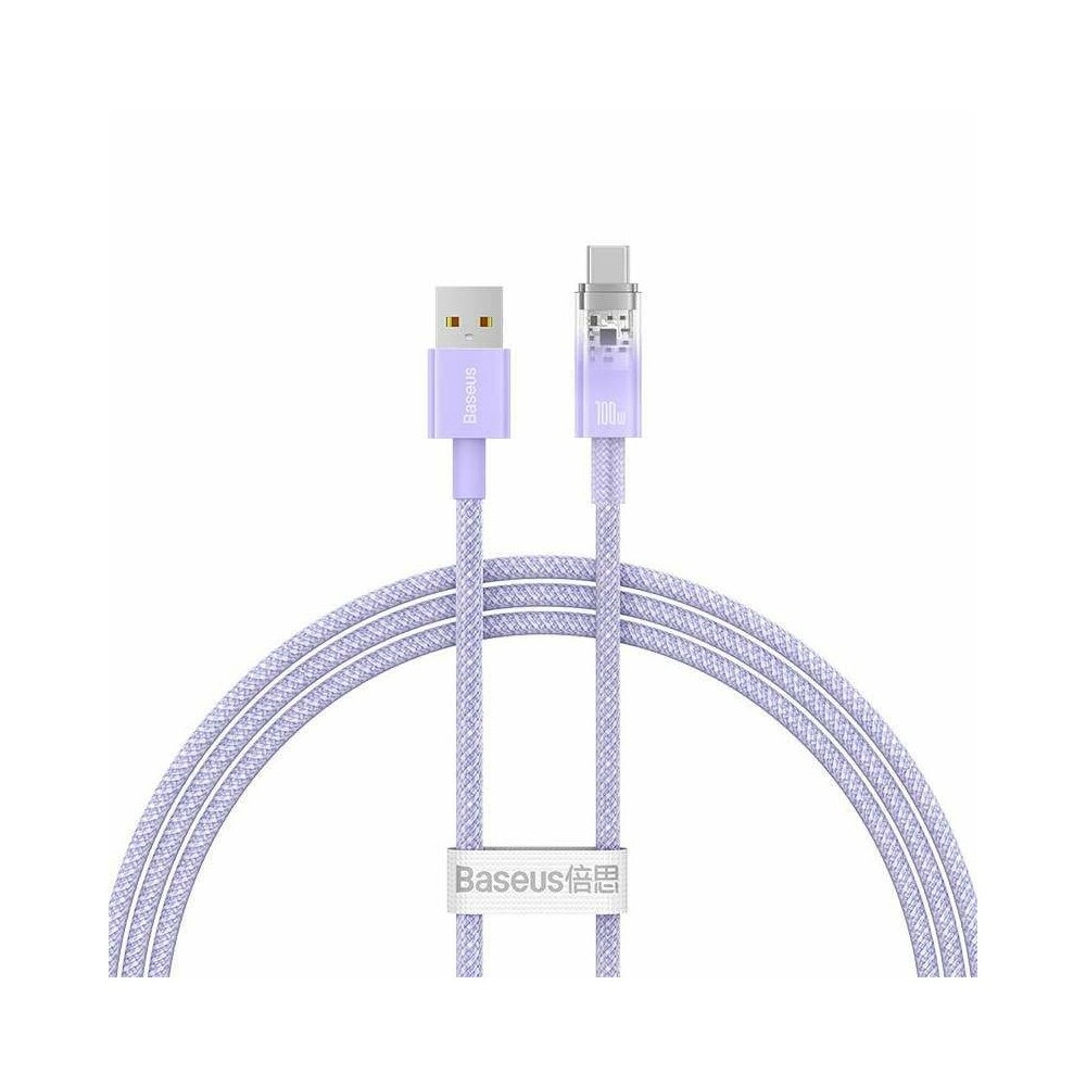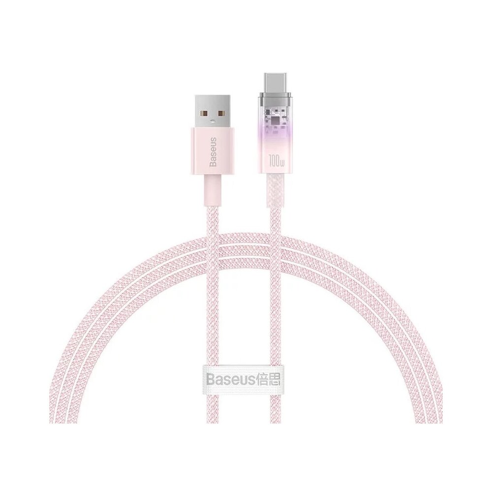 Cablu Baseus Explorer, USB la USB-C, 100W, 6A, Quick Charge, 1m Roz