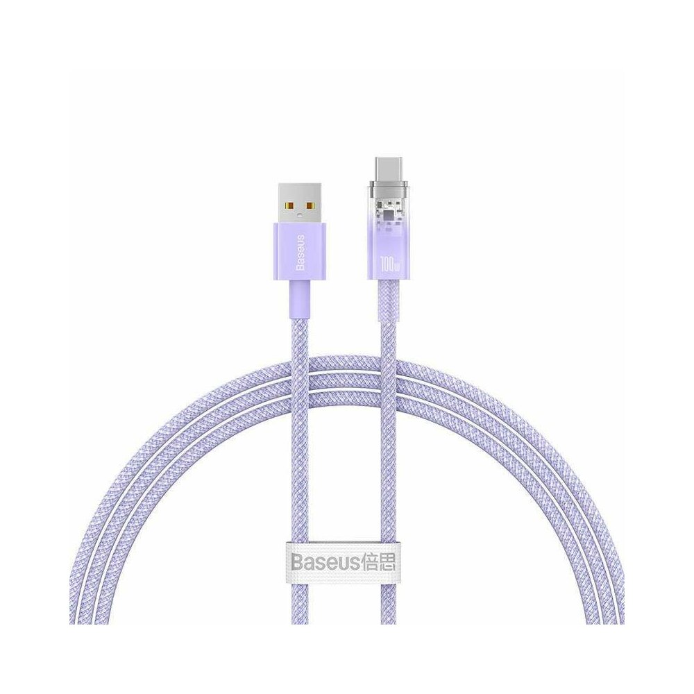 Cablu Baseus Explorer, USB la USB-C, 100W, 6A, Quick Charge, 1m Violet