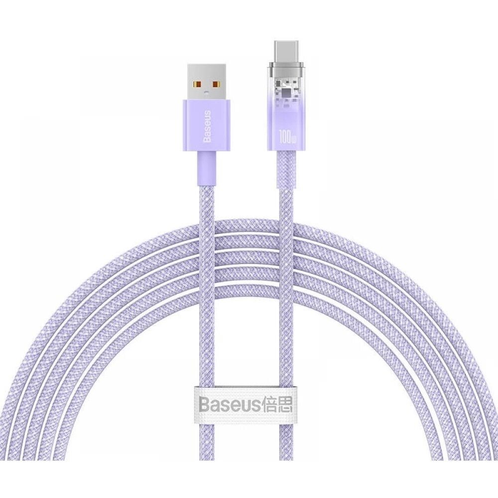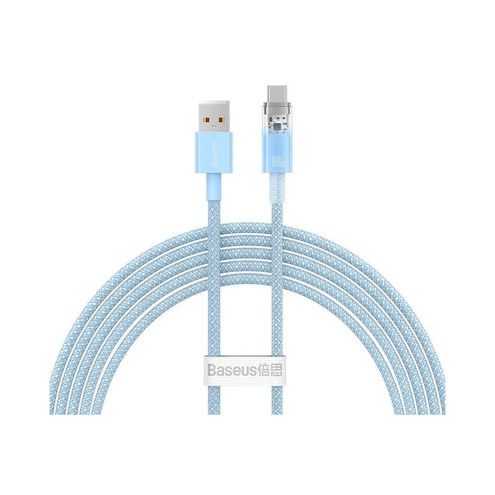 Cablu Baseus Explorer, USB la USB-C, 100W, 6A, Quick Charge, 2m Albastru deschis