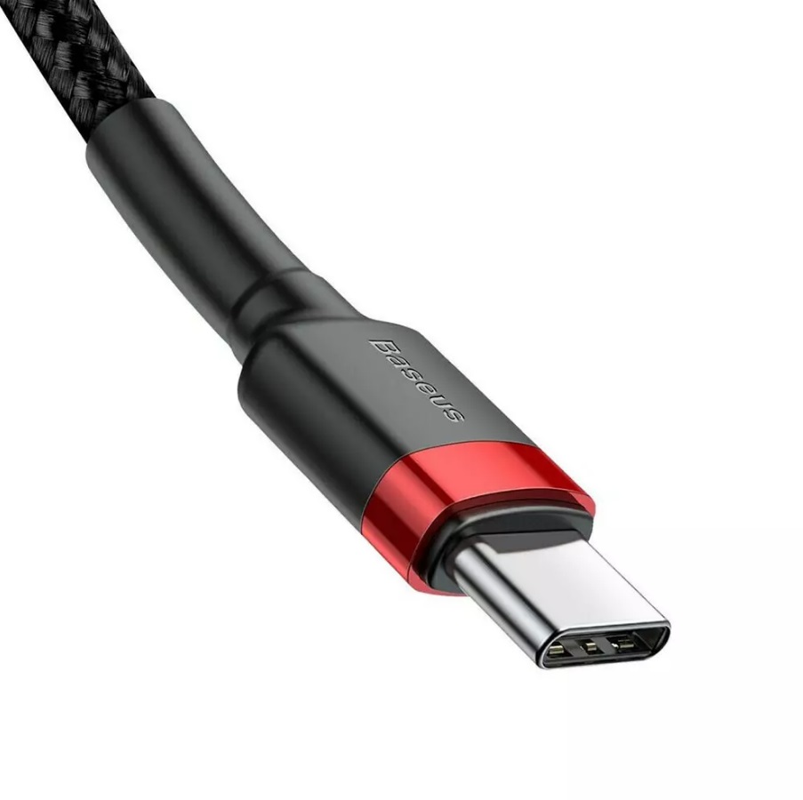Cablu de date Baseus Cafule PD 2.0 60W, USB-C la USB-C, 1 metru, 20V, 3A Rosu + Negru