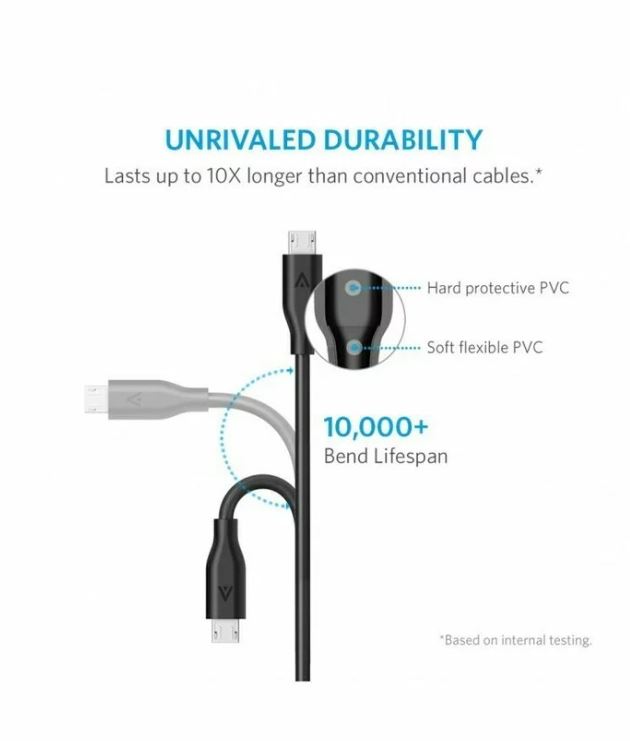 Pentru a maximiza compatibilitatea multitudinii de conectori existenti in dispozitivele mobile, am creat cablul Cablul Micro USB Anker PowerLine cat mai compact posibil, dar fara a compromite durabilitatea acestuia.